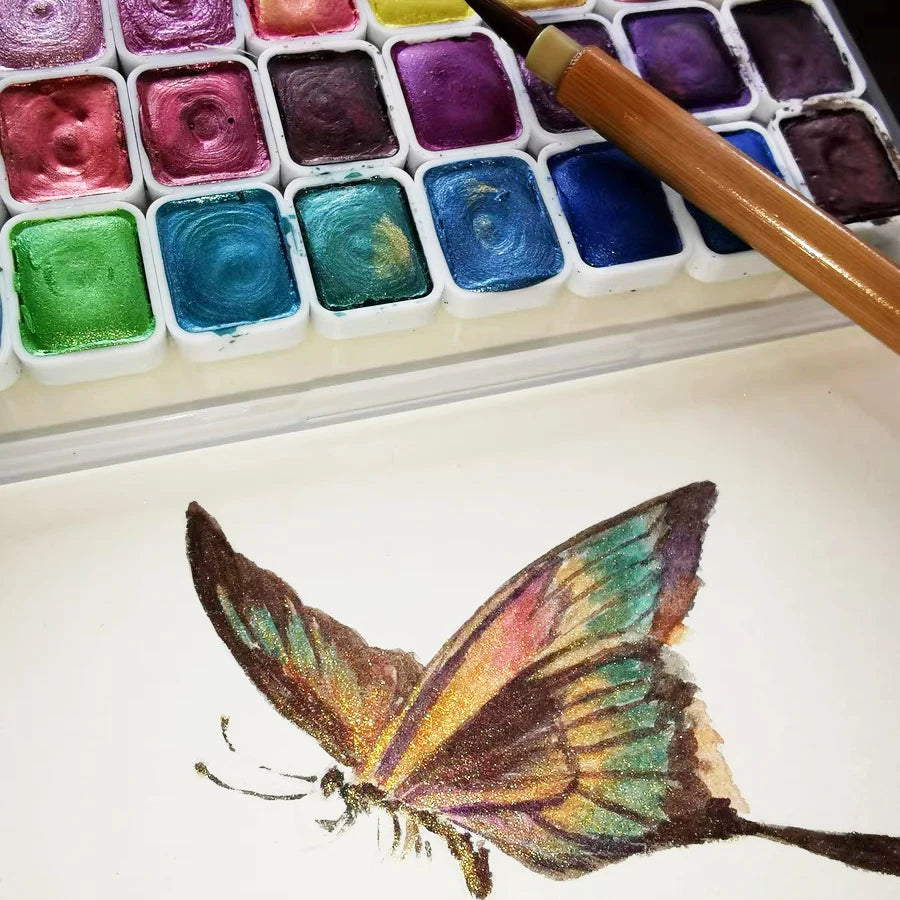 Watercolor set, 24 colors, Pearlescent Metal Solid